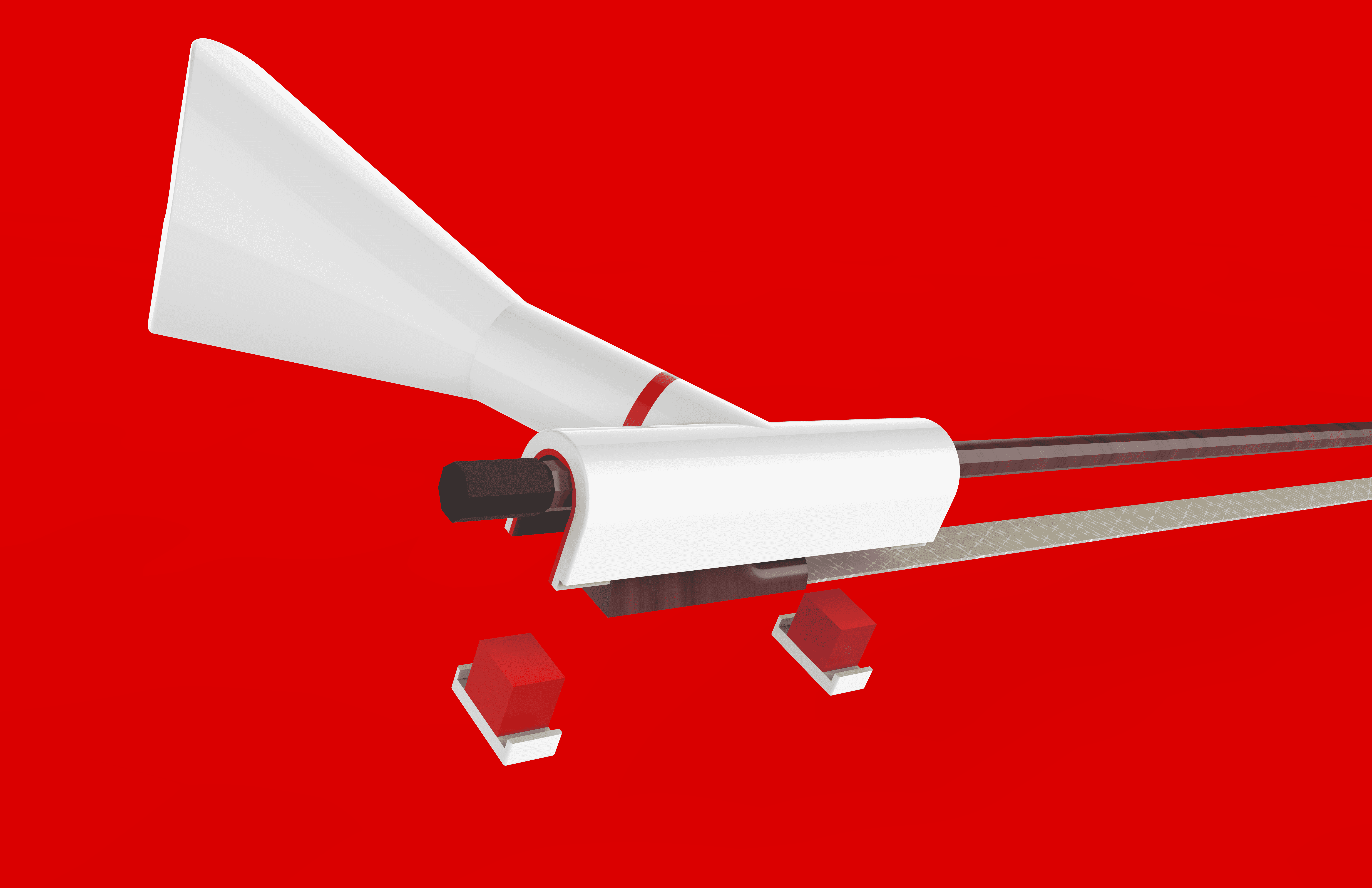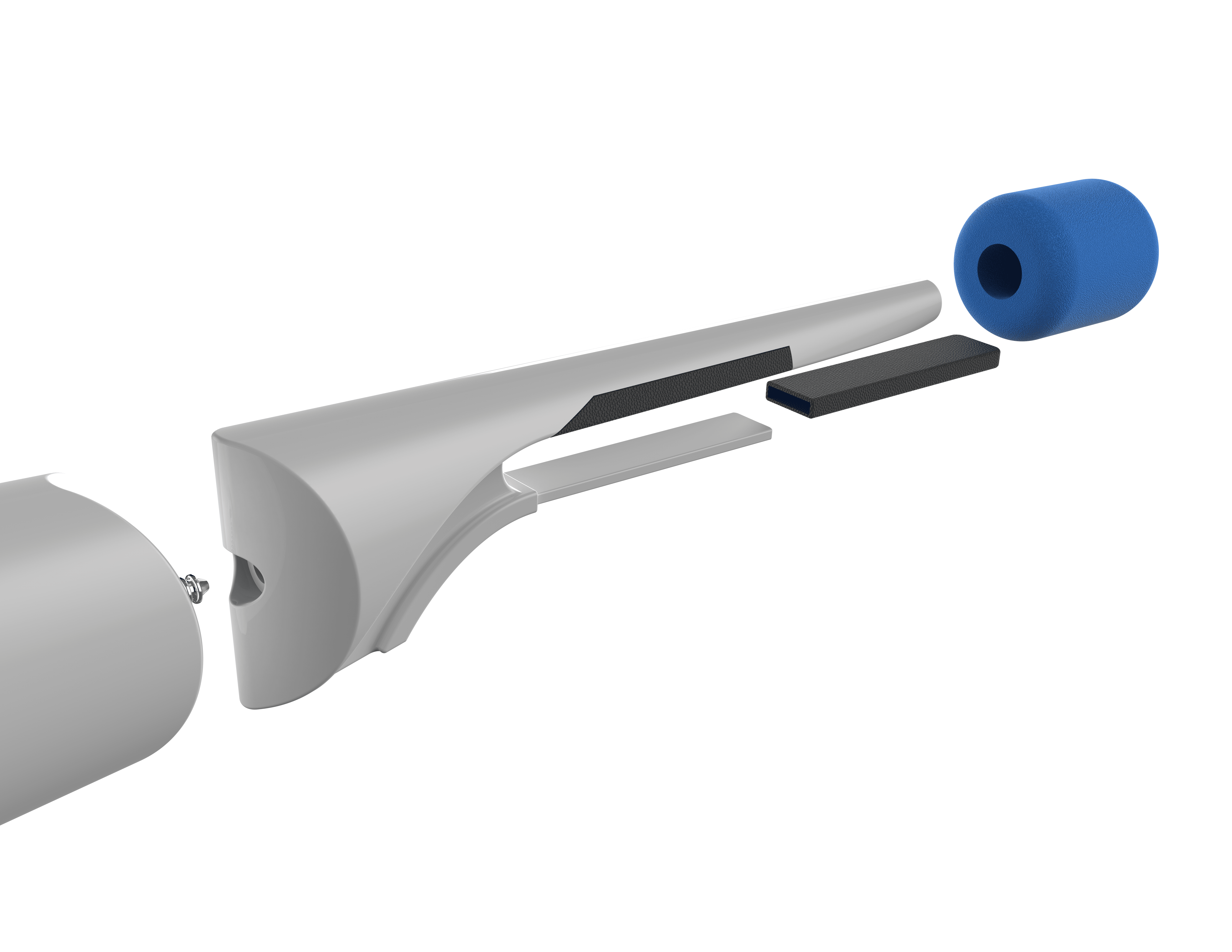 A rendering of the arm prosthetic that can receive the modular tools with the shuttle lock pin.